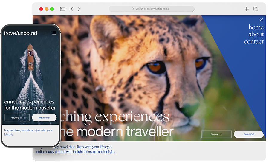 Travel Unbound was conceived as a modern luxury travel brand for clients who want more than bookings and brochures. The proposition was clear from the start: bespoke, insider-led travel design with a polished, highly personal feel. The live site frames it as “a fresh take on luxury travel” and “enriching experiences for the modern traveller,” with a strong emphasis on tailored journeys, insider access, seamless planning and responsible tourism.